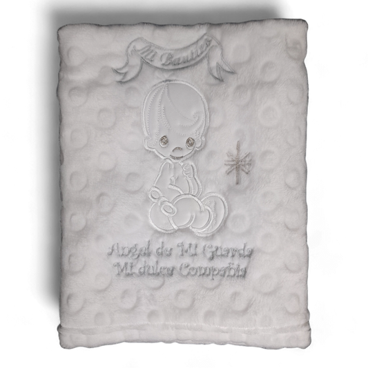 Frazada bordada con bastilla bautizo bebe