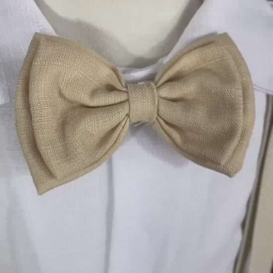 Conjunto en short fresco y moderno con un toque vintage el cual cuenta con moño y tirantes, su camisa fresca elaborada en lino mexicano, el short cuenta con elástico ajustable para mayor comodidad y movilidad, una gorra ajustable combinada al tono de los accesorios, el cual esta disponible en varias combinaciones de colores.